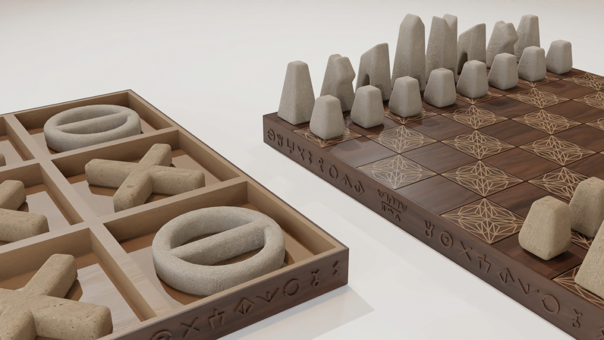 The proposed product is a versatile game board that serves as both a chess and Tic-tac-toe board. Inspired by the stunning AlUla mountains, the designer have incorporated abstract shapes from the rich cultural heritage of the region into the chess pieces.