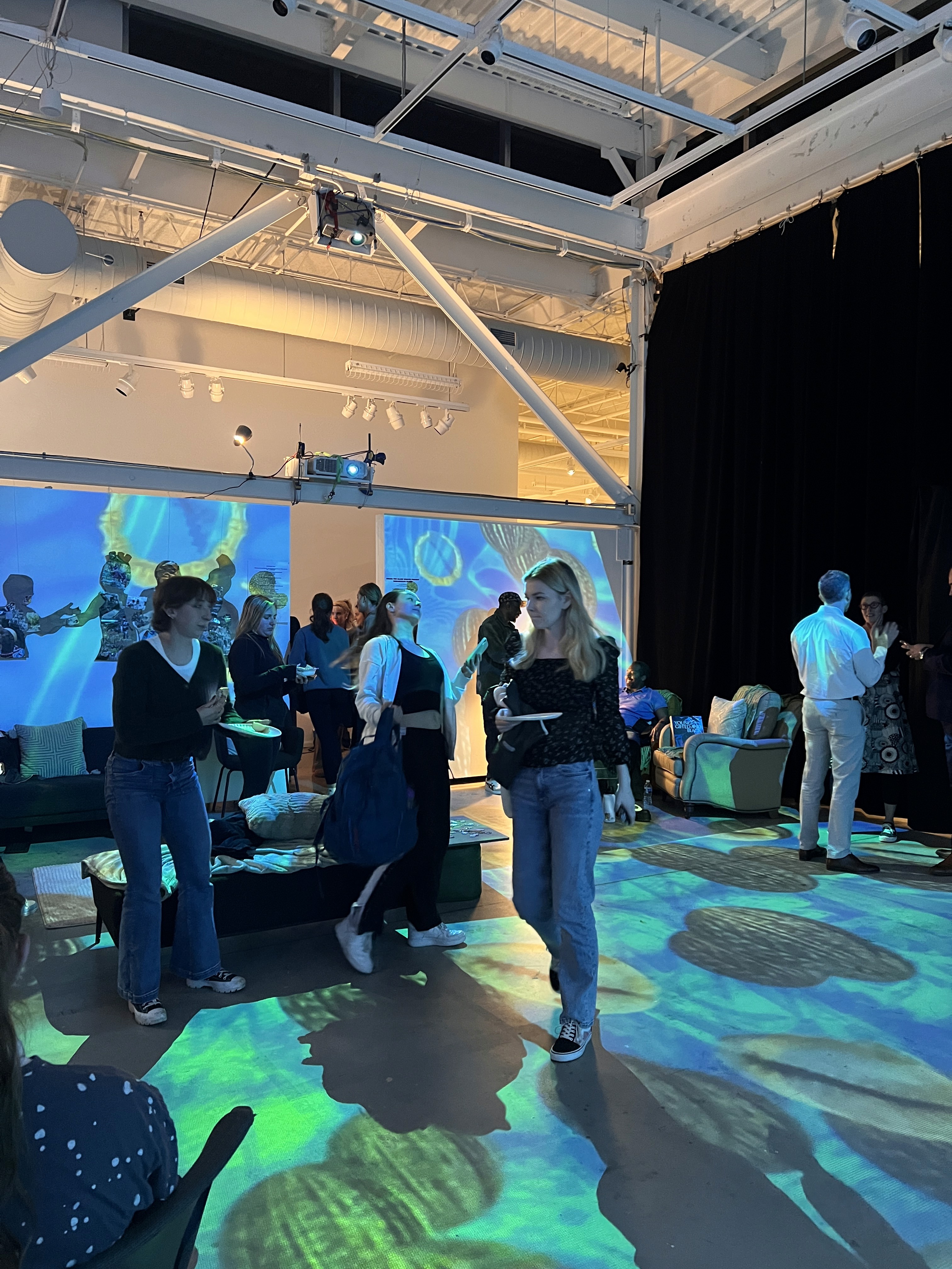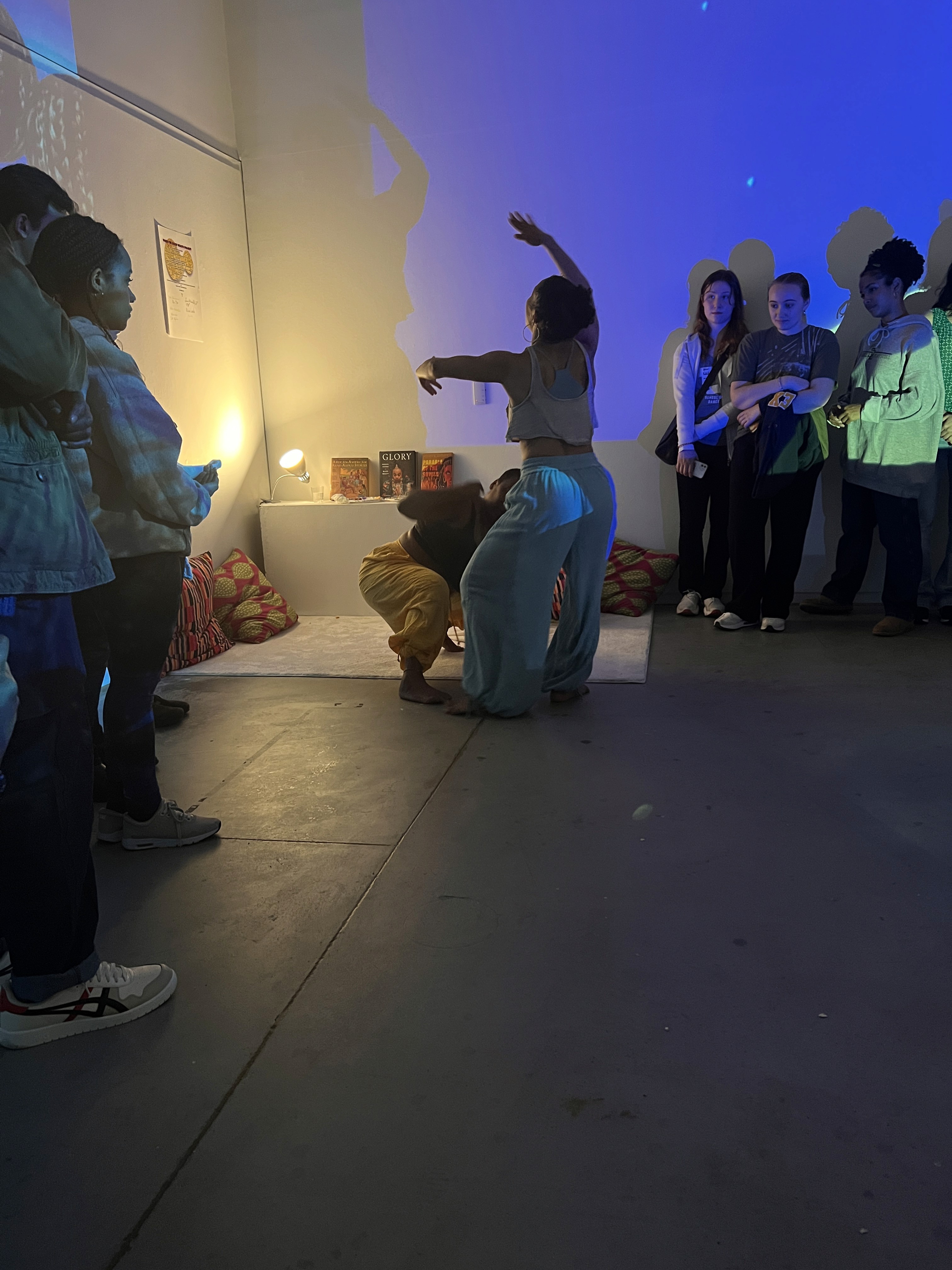 Performed by MBdance in collaboration with a Digital Media Artist and Drexel University’s Dance Department,Womb: The Black Wealth Project—The Activation was presented at the Pearlstein Gallery in Philadelphia, Pennsylvania as a collaboration between Drexel University’s Digital Media Department, Dance Department, and MBdance. The project featured interactive installations that translated bodily movement and sound into real-time digital visuals, creating an immersive environment shaped by performance, participation, and sensory exchange. One installation employed motion capture to transform participants’ movements into screen-based visual expression, while another used sound-driven interaction to generate visuals through vocal and sonic input. By linking body, voice, and digital image, the project framed Black wealth not only as material value, but as embodied inheritance, cultural memory, creativity, and presence.